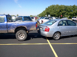 Soon, my youngest discovered the snack stand, and our focus was taken from the game and the excited mom. I had left my money in the car, so I made a deal with the two non soccer playing kids...if they would run to the car and get the cash, I would let them buy a treat. So, off they ran, only to return a few minutes later with shock on their faces and panic in their voices. 'Mom!', my daughter exclaimed, 'some truck hit our car and there is glass everywhere and our car is crooked!' In disbelief, I followed them back to the parking lot, where I was met with a scene that immediately brought anger into my heart. I had parked my small car neatly in a parking stall when I arrived. Now, in the stall where my car had been, there was a mid-sized Toyota truck. It appeared to have backed into the stall and right into the bumper of my car, pushing the car nearly all the way out of its original stall and crookedly into the one in front. The only part of the car that was still in the stall where it started was the rear end that was wedged underneath the bumper of the truck.The impact was such that the red plastic from the tail light had flown through the air and come to a rest at near the driver's side door. I could not fathom that someone could go through a collision like this and then just get out of the car and go watch a soccer game like nothing happened. Had they been drinking? How could he or she be so irresponsible?